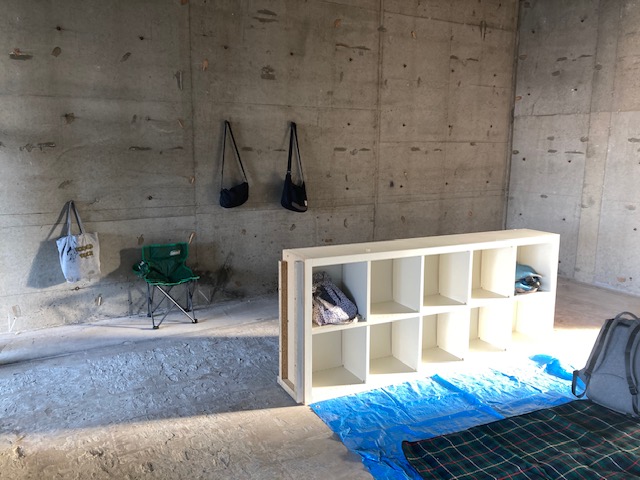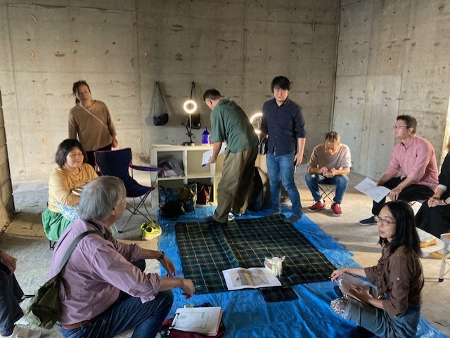 参加した皆さんが本棚(!?)、照明、キャンプ用テーブルや椅子などを持ち寄ってくれたおかげで、車座になってなんだか楽しい雰囲気!