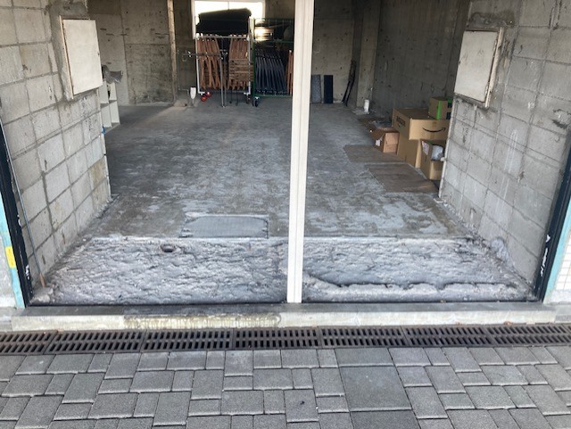 現状はスケルトンになっているため、床材が壊れ、凸凹がひどくなっているので、これをモルタルで平らにならしていきます。