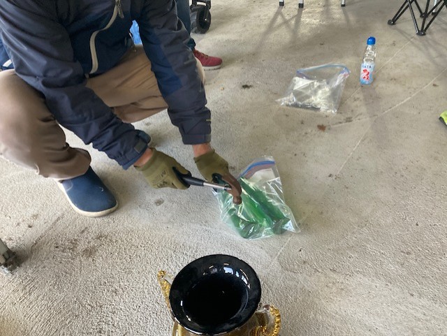 前回の「KUDAKU」では、色とりどりのガラス瓶を砕く作業を行いました。