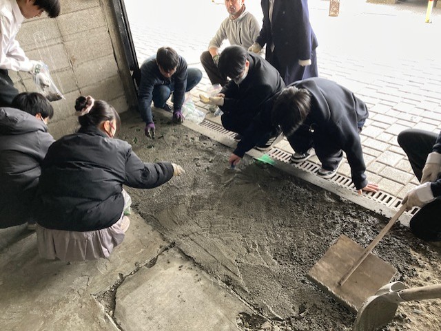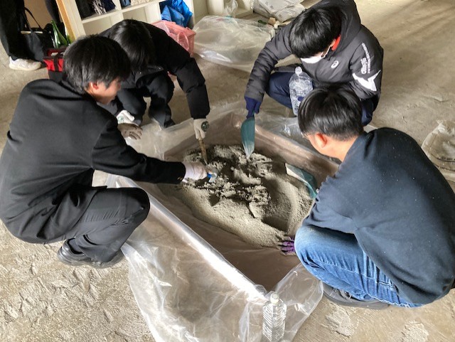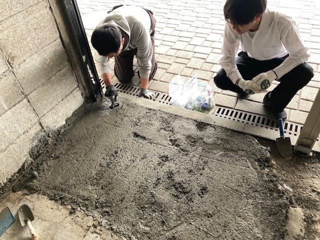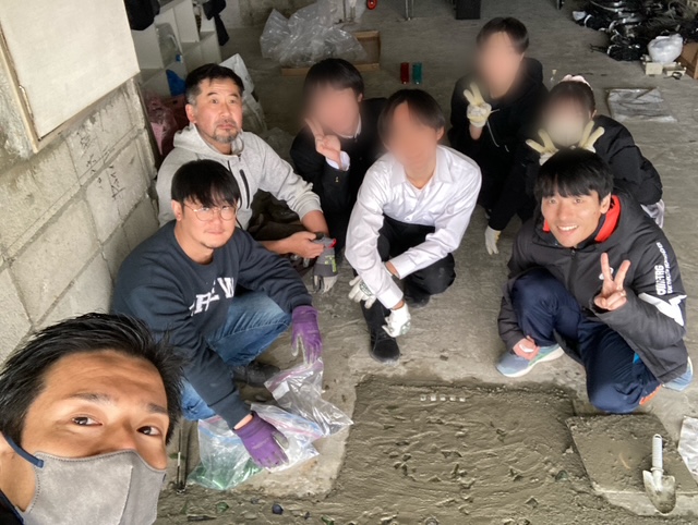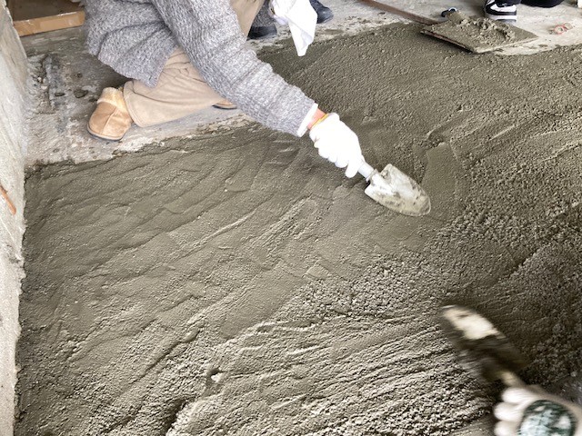 モルタルを練るところから、始めはおそるおそるスタートしました。