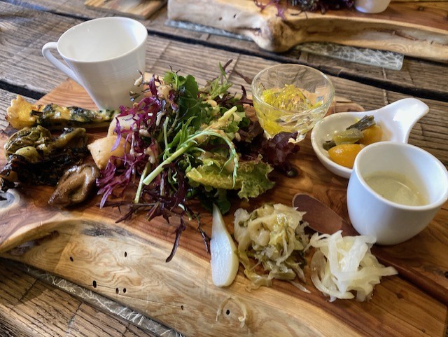 その名のとおり、野菜などの食材をはじめ、お店の内装や器にいたるまで、地域の資源を広く活用されていたのが印象的でした。