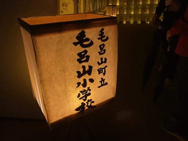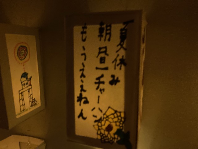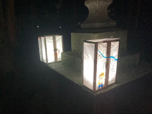 絵灯篭の製作は地元の小学校と連携しているそうで、絵灯篭には子どもたちによる絵や文章が描かれていました。