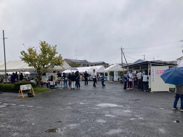 雨だったのでそこまでお客さんもいないだろうと高を括っていましたが、到着すると体育館を中心にたくさんの人が集まっていました。